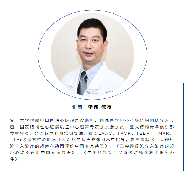围绕TA-TEER术式中的超声应用,李伟教授系统讲解了术前评估、术中引导与术中评估的关键要素: