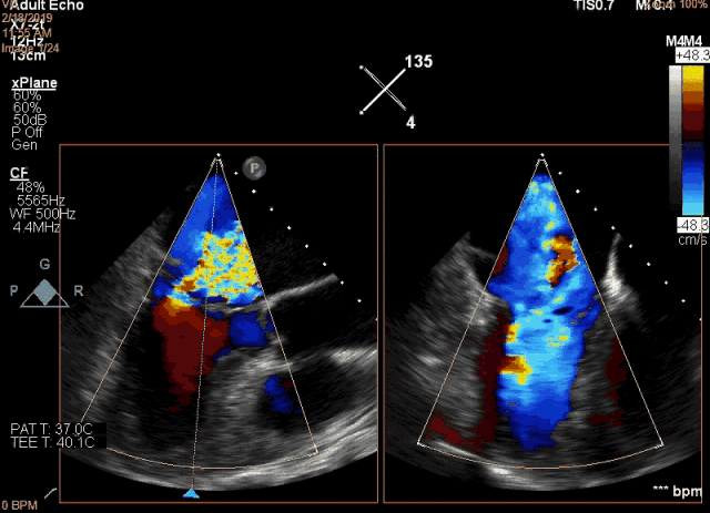 图2 术前食道超声显示二尖瓣大范围脱垂及极重度反流