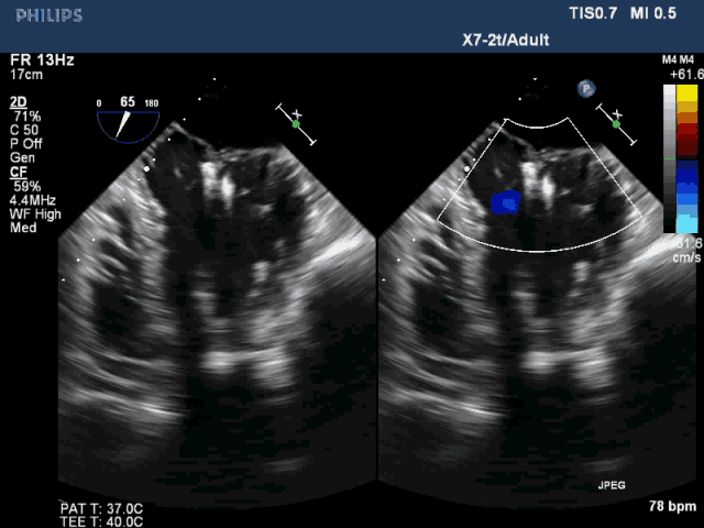 该例患者是一名78岁男性,合并症较多,基础心功能差,传统外科手术风险极高,故选择了经心尖二尖瓣夹合术(ValveClamp)。然而,术前超声评估显示,患者后叶脱垂范围极大,达23mm,P2 和P3均有脱垂,反流颈宽度达13mm。严重二尖瓣反流导致患者心功能很差,血压较低。如此广泛的脱垂,使用国外同类产品完成经导管微创二尖瓣修复也是很有挑战,甚至无法完成的。葛均波院士团队分析患者病情后,选择了使用我国自主研发的二尖瓣器械ValveClamp为患者实施经心尖二尖瓣夹合术。反复尝试数次单个夹合器夹合后,患者仍有中重度二尖瓣反流。遂采取双夹合器技术,为患者植入两个夹合器,术后即刻患者反流减少至轻度,二尖瓣跨瓣压差仅为3mmHg。该例手术是ValveClamp首例采取双夹子技术,证明了该器械行双夹子技术是安全、可行的。手术由中山医院心内科葛均波院士、周达新教授、潘文志副主任医师,心外科魏来教授,心超室的潘翠珍教授、李伟主治医师,心外麻的郭克芳教授共同完成。