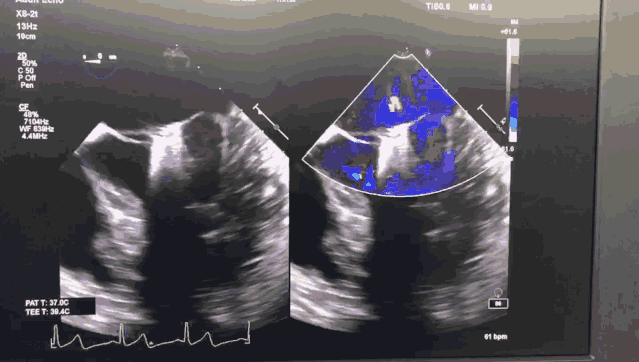 患者是71岁老年男性,体格消瘦,极重度二尖瓣反流,后叶P2及部分P3脱垂,同时合并重度肺动脉高压,STS评分6.1%,外科手术风险高。