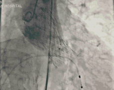 6个月之前,患者出现反复胸闷气急,心超提示人工生物主动脉瓣置换术后,中重度主动脉瓣口反流,轻度瓣周漏。这例患者目前已85岁,同时合并持续性房颤、高血压、心功能不全Ⅲ级,STS评分7.56%,外科手术风险高危。
