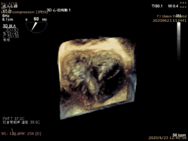 第二例为女性老年患者,因活动后气促、心脏杂音3年余入院,超声心动图评估为二尖瓣后叶P2脱垂、P2偏P1处细小腱索断裂伴重度反流,心外科会诊认为开胸手术高风险,STS评分为6.1%。该患者同样在全麻下植入一枚ValveClamp夹合器,术后即刻显示二尖瓣反流降至轻度,手术用时更少,且无手术并发症发生。